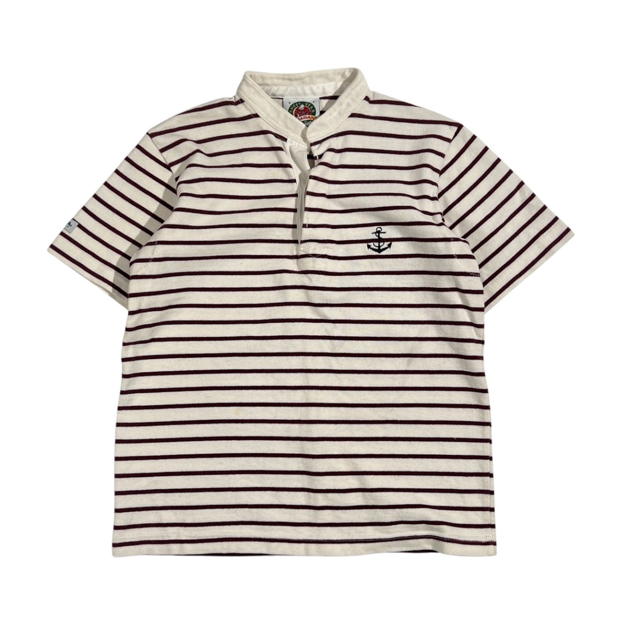 90s カナダ製 BARBARIAN バーバリアン ボーダー柄 半袖 ラガーシャツ S/ボルドー ホワイト系 メンズ