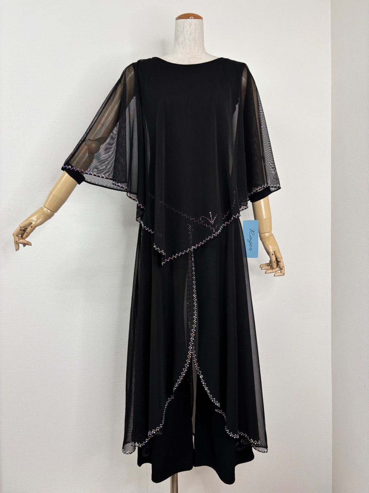 《新品》社交ダンス ブラック ケープ オーバースカート ラインストーンデザイン パンツセットアップドレス 衣装【Roger】