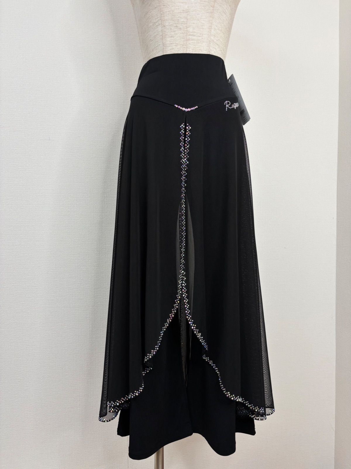 《新品》社交ダンス ブラック オーバースカート ラインストーンデザインパンツ 衣装【Roger】