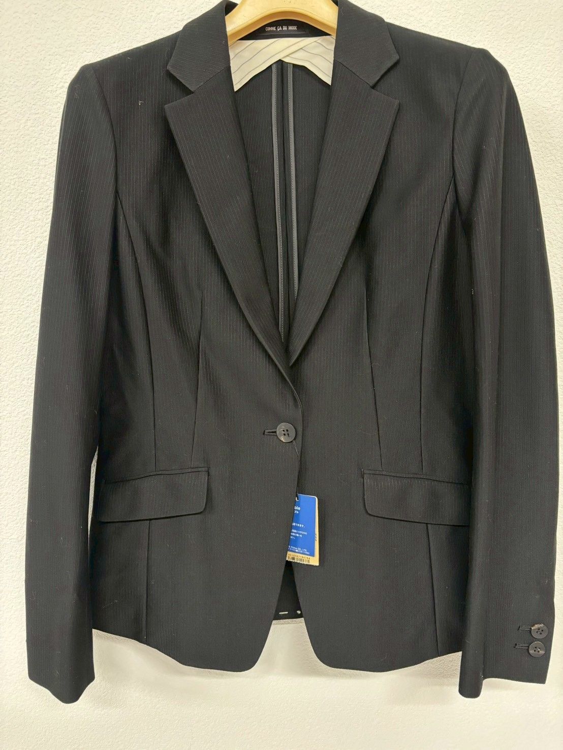 【美品】コムサデモードメン ストライプスラックス センタープレス ビジネス 黒M