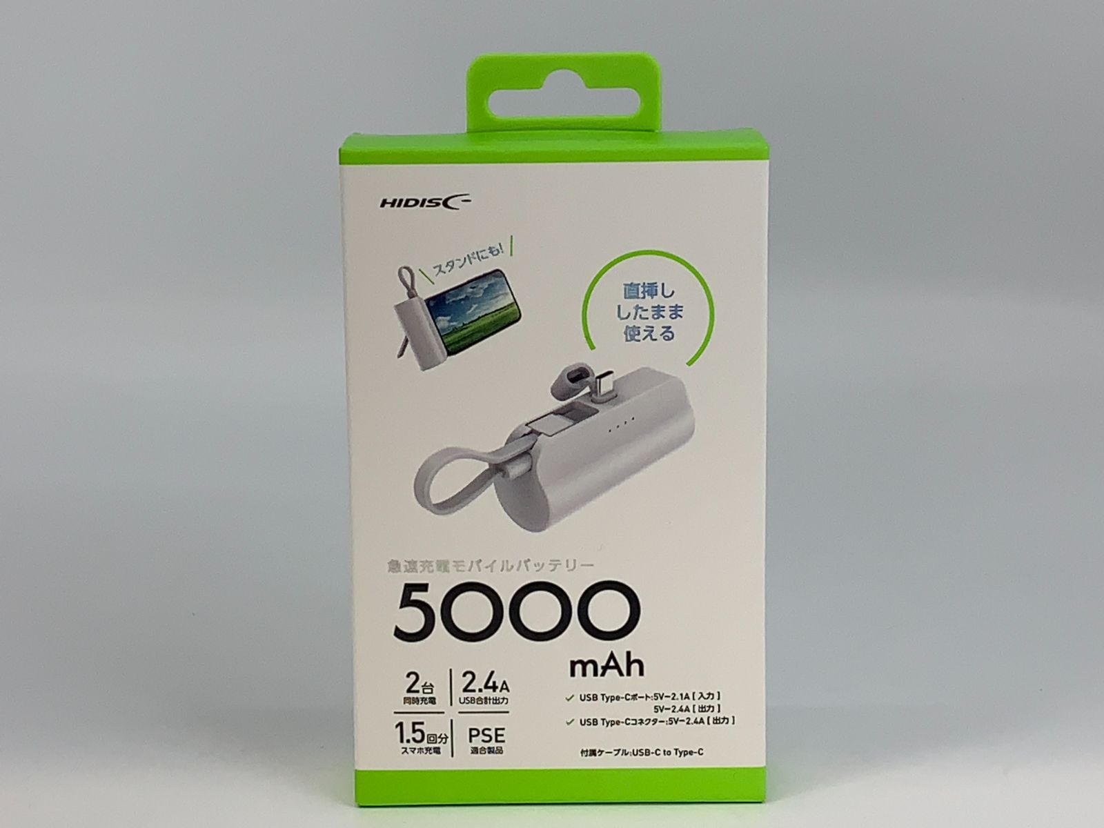 Type-C 入出力対応モバイルバッテリー 5000mAh HD4-MBTC5000 ホワイト