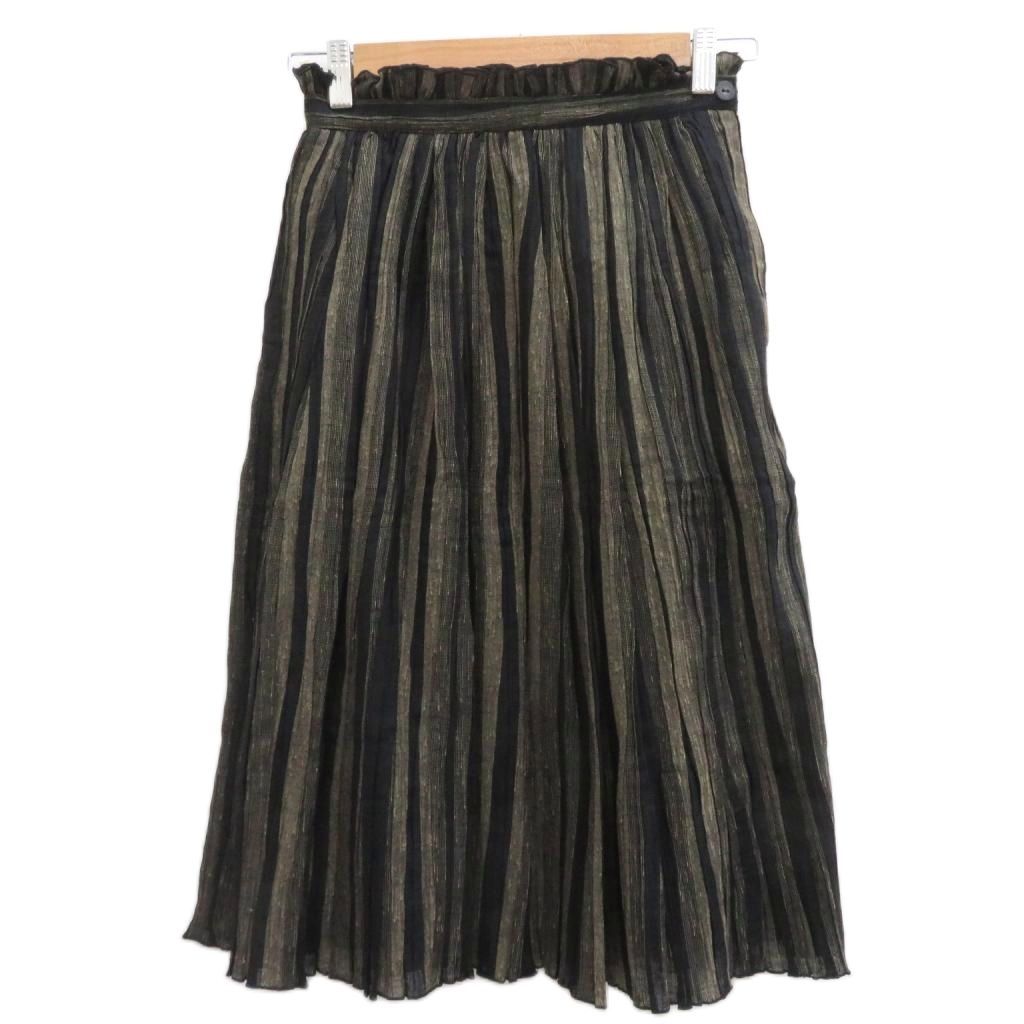 コルディア フレアスカート ひざ丈 リネン混 上品 きれいめ ネイビー【40】