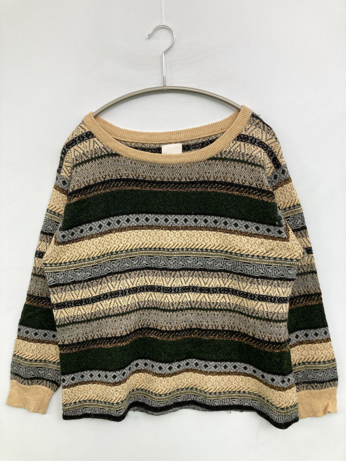 so ニット/セーター F アイボリー ウール・ニット カシミヤ ナイロン ボーダー柄 その他総柄 ミドル丈 長袖 クルーネック(丸首)