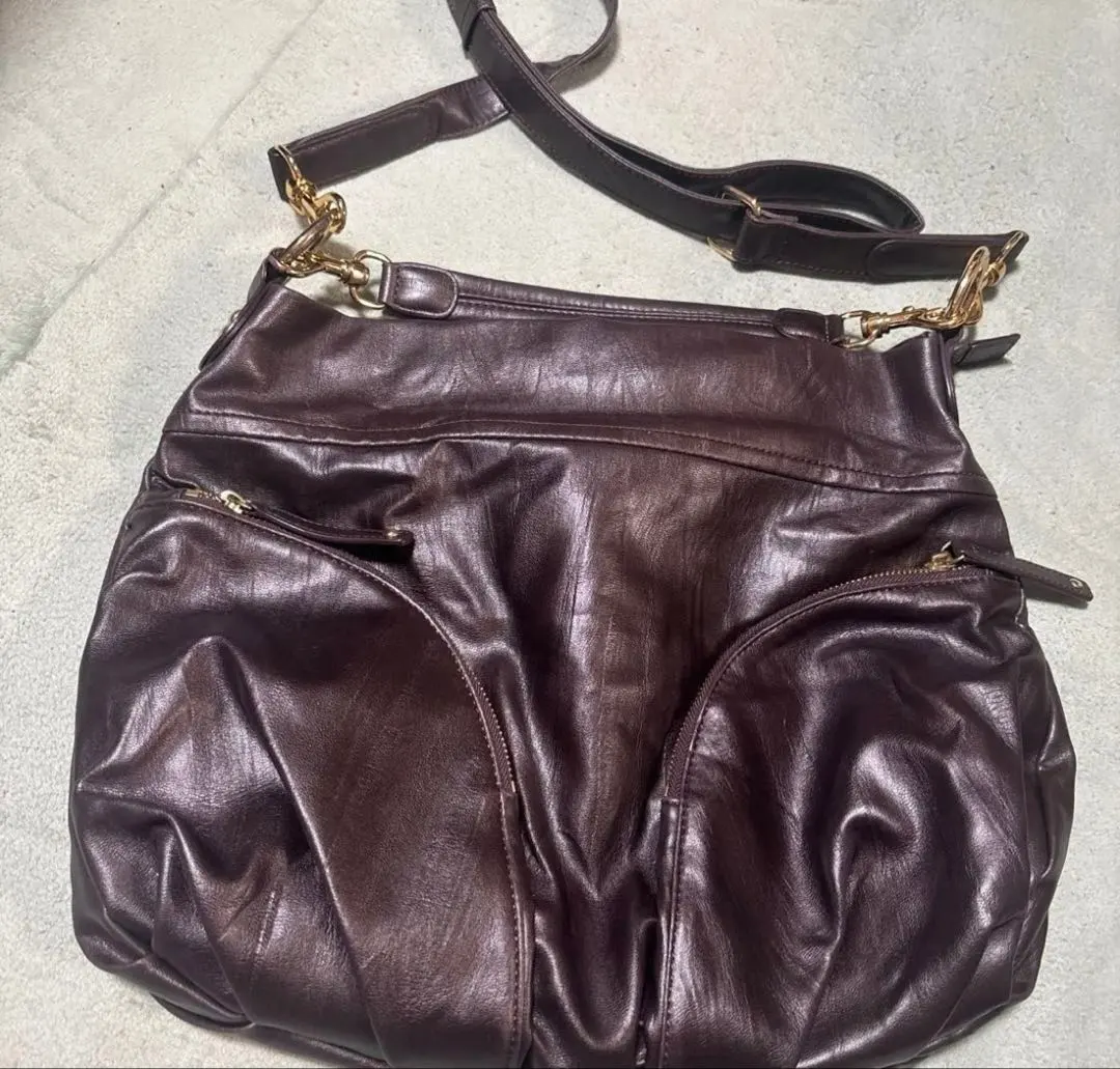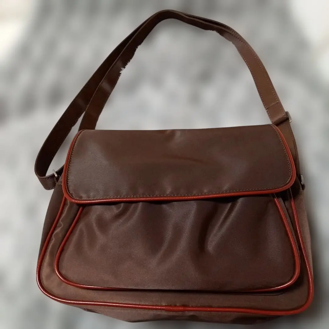 SAZABY ブラウン ショルダーバッグ 赤いパイピング 旅行サブバッグ