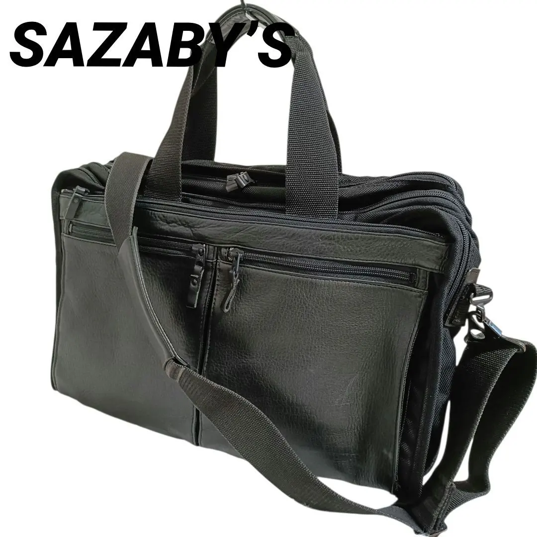 SAZABY’S ビジネスバッグ 2way レザー 素材切替 黒 状態良好♪