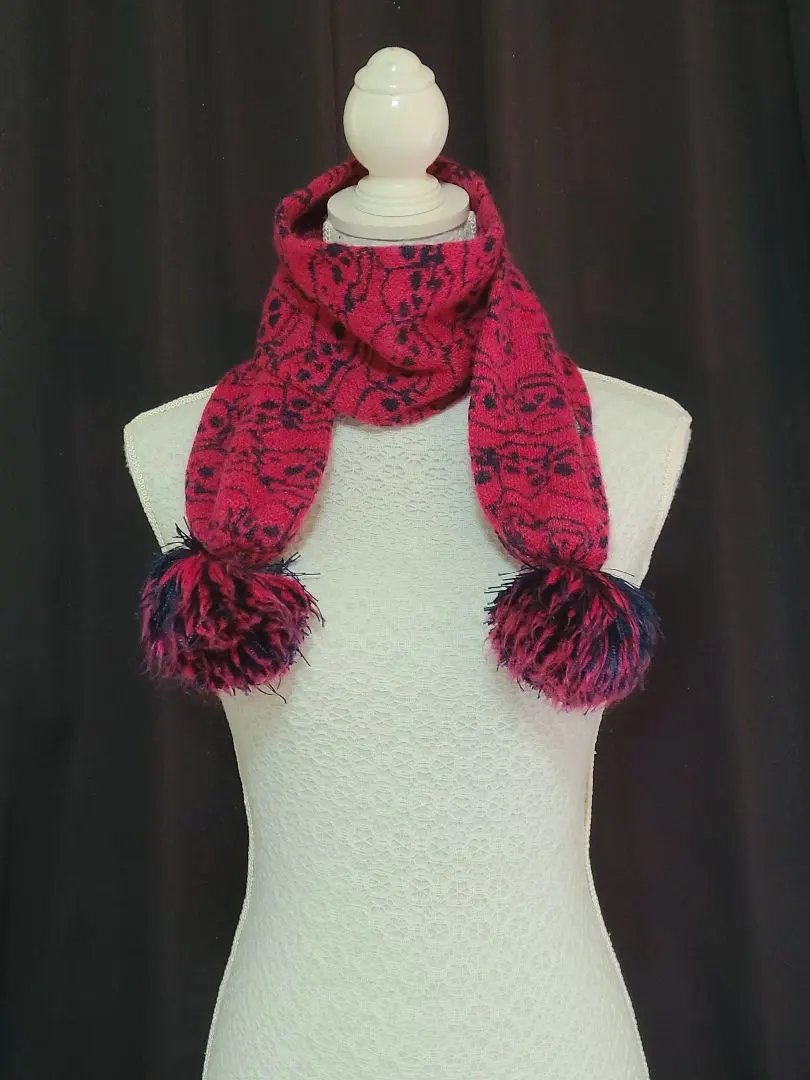 Hysterics ヒステリックス ドクロ スカル柄 マフラー ポンポン ピンク