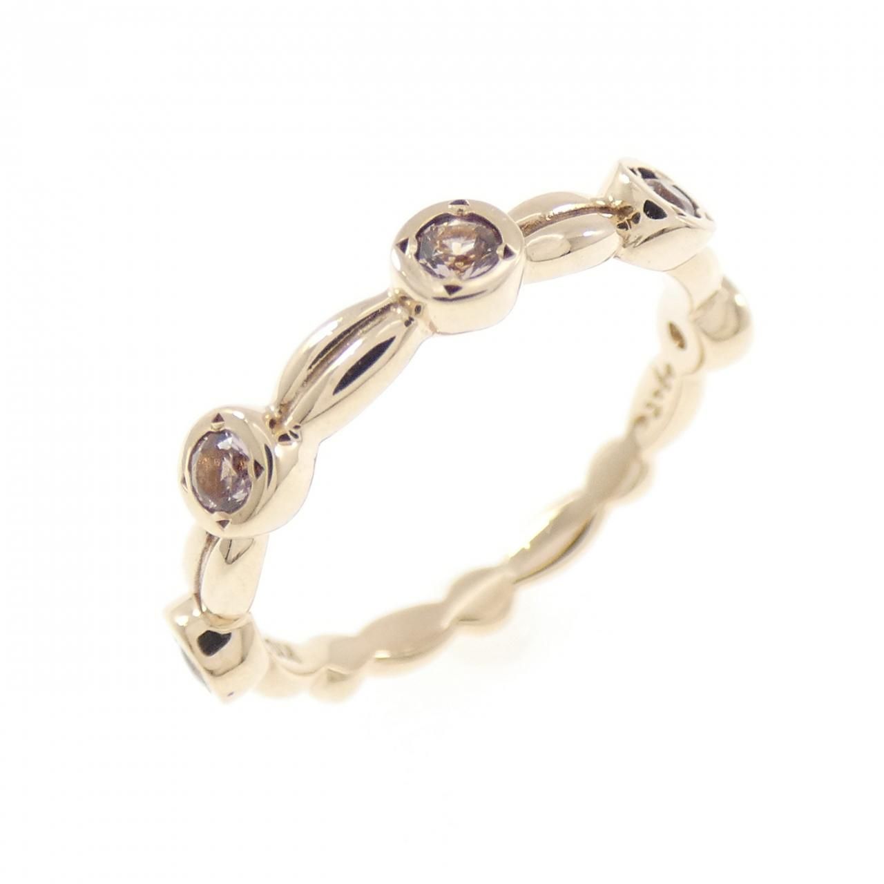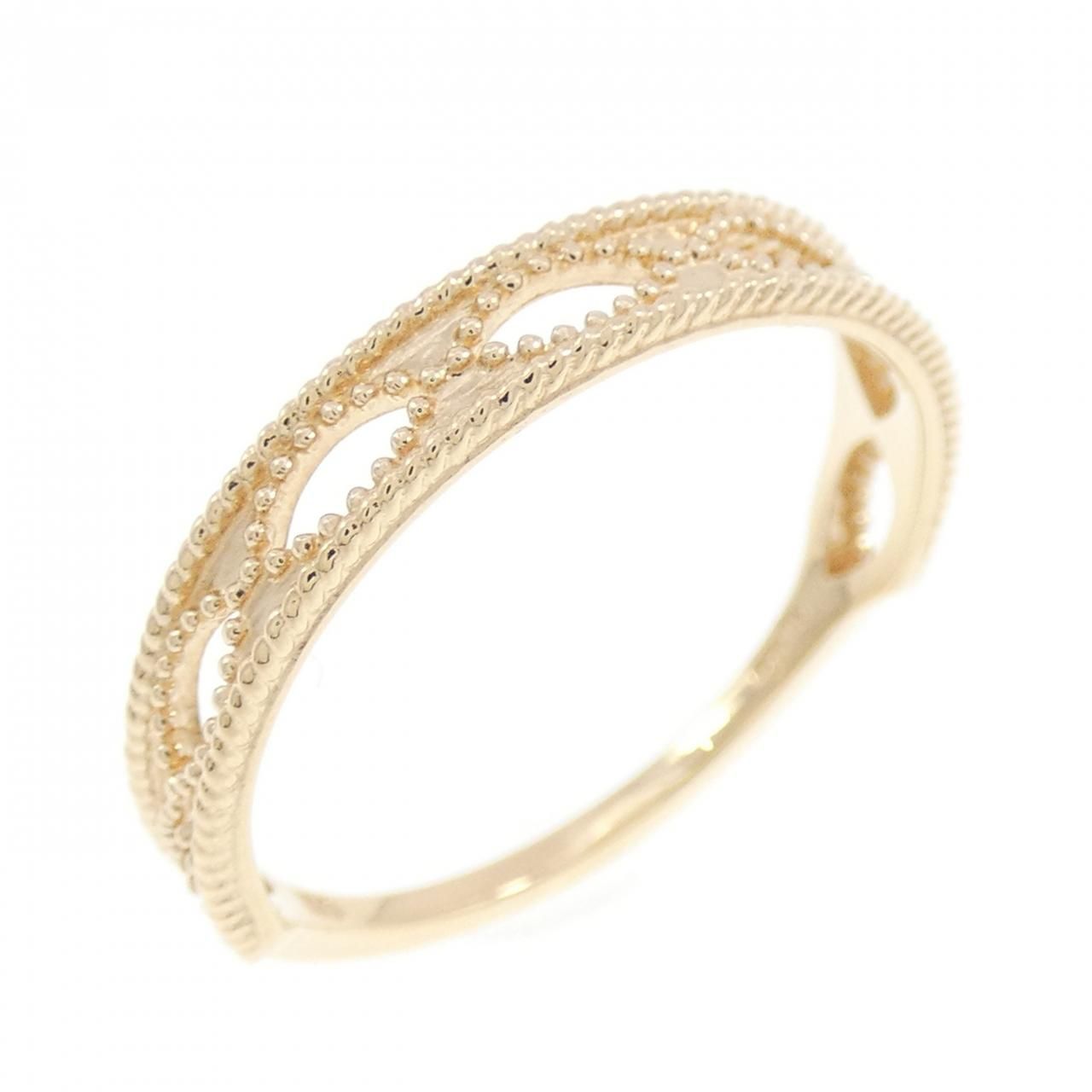 現行 agete k5 マルチストーン ゴールドリング ミル打ち 透かし 13号