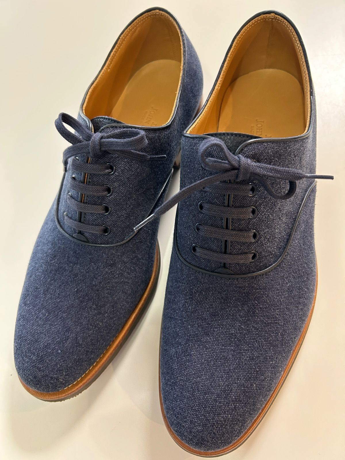 ジョンロブJOHN LOBB品番8695デニムシューズ ビジネスシューズ ドレスシューズ くつ クツ 紐靴 レースアップシューズブルー青色サイズ7 25.5センチイタリア製 メンズmen男性用紳士ユニセックス