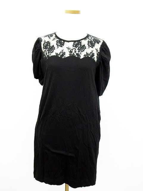 ラウラ Laula ワンピース 半袖 ミニ レース タイト F 黒 ブラック