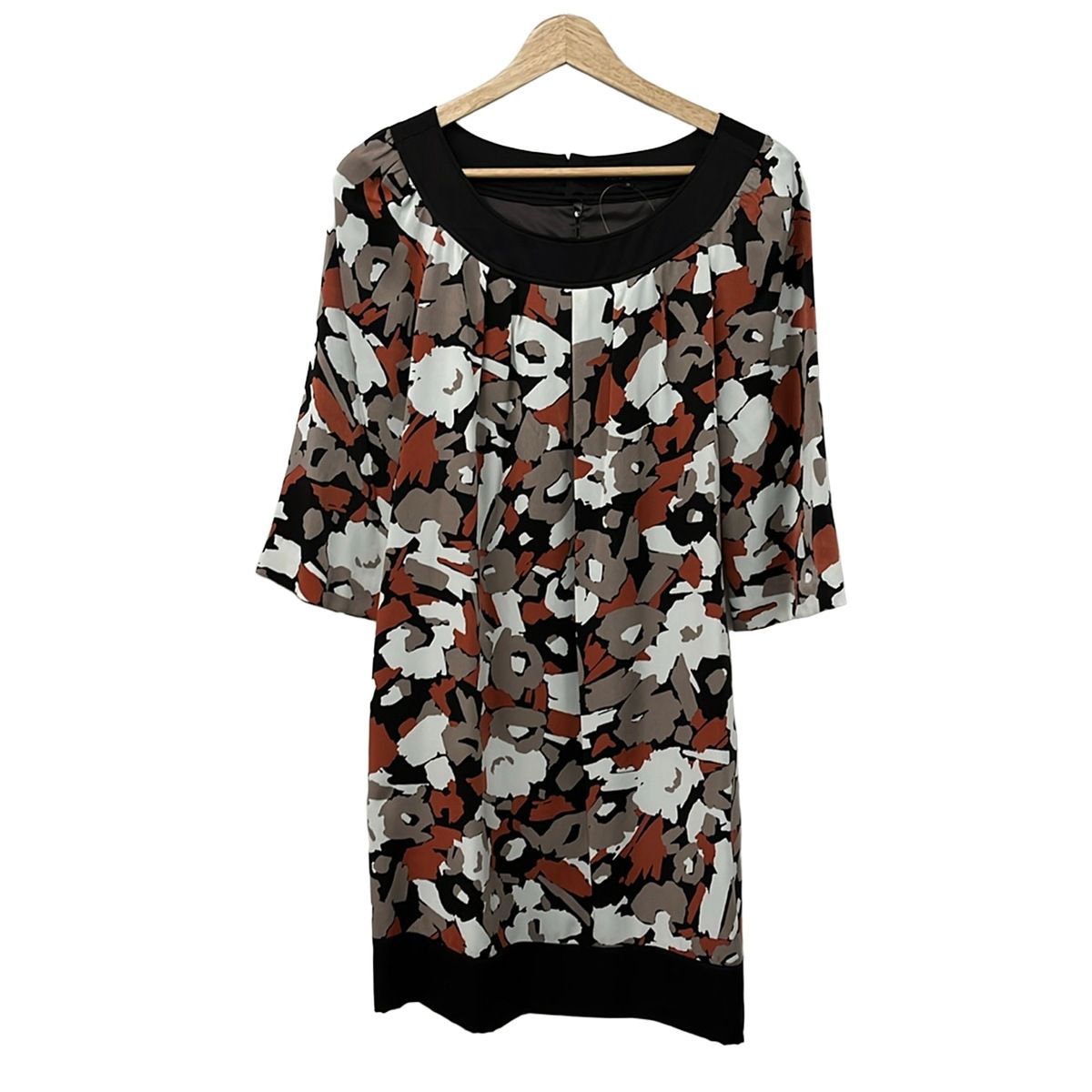 23区(ニジュウサンク) ワンピース サイズ38 M レディース美品 黒×グレーベージュ×マルチ 七分丈/ひざ丈