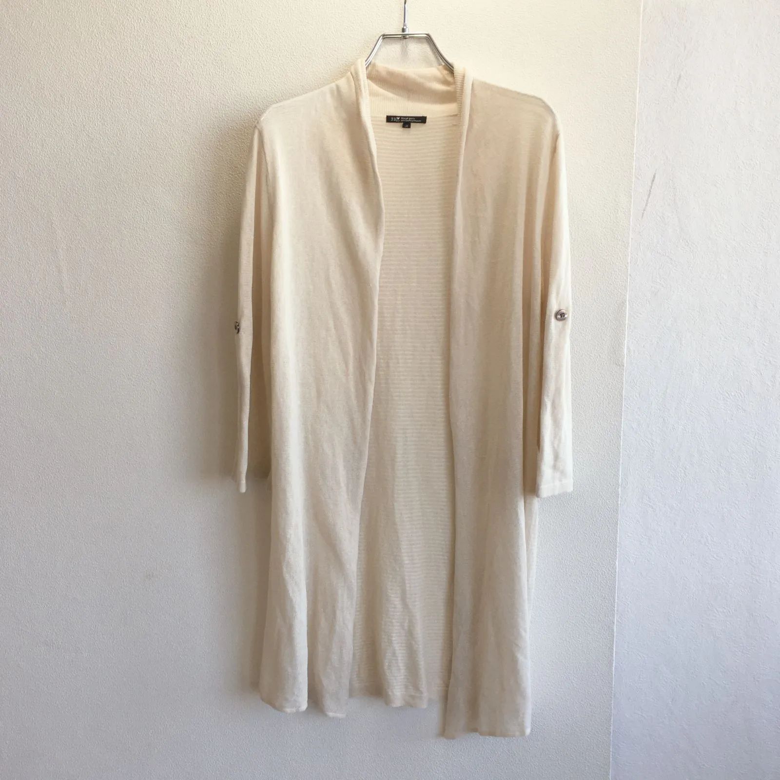 23区 七分袖リネンカットソー レディースL相当 ベージュ 切替生地 サイド切替