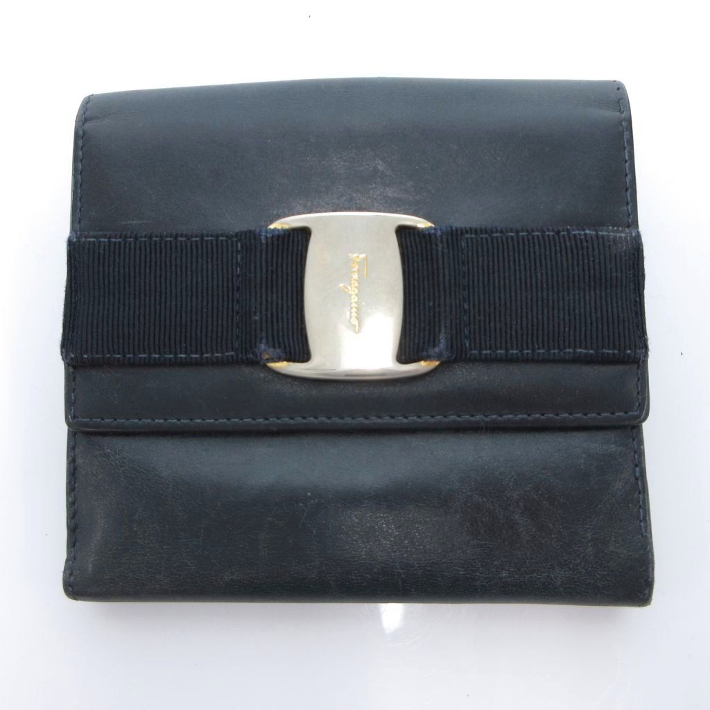 フェラガモ Ferragamo 折り財布 ブァラリボン レザー ブラック