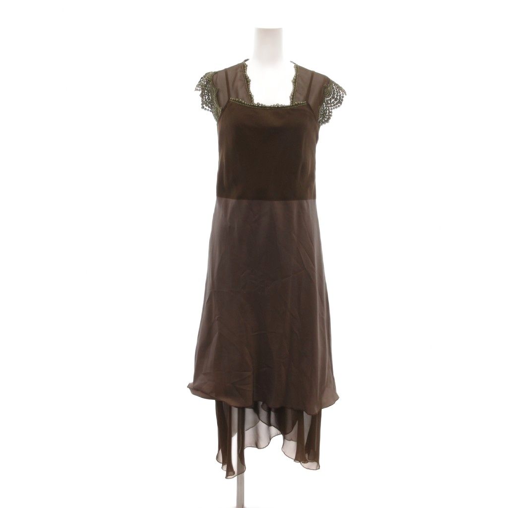 ジネス Jines 美品 ワンピース 38 茶 ブラウン 半袖 スクエアネック ノースリーブ アシンメトリーヘム ロング丈/HW ■ECG003