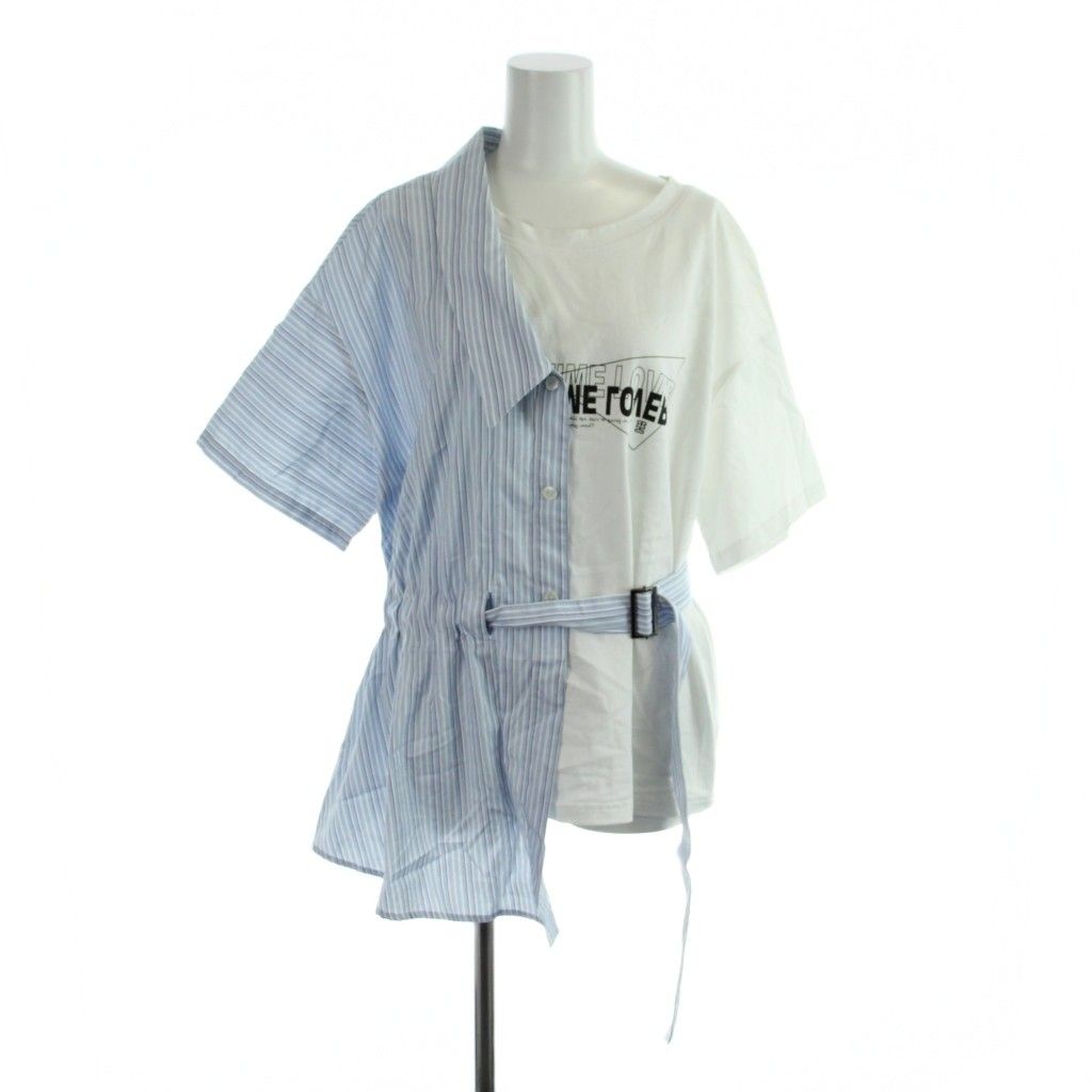 リツコ シラハマ RITSUKO SHIRAHAMA シャツドッキング Tシャツ 1 白 ホワイト 青 ブルー 半袖 ストライプ柄 /AB ■OS