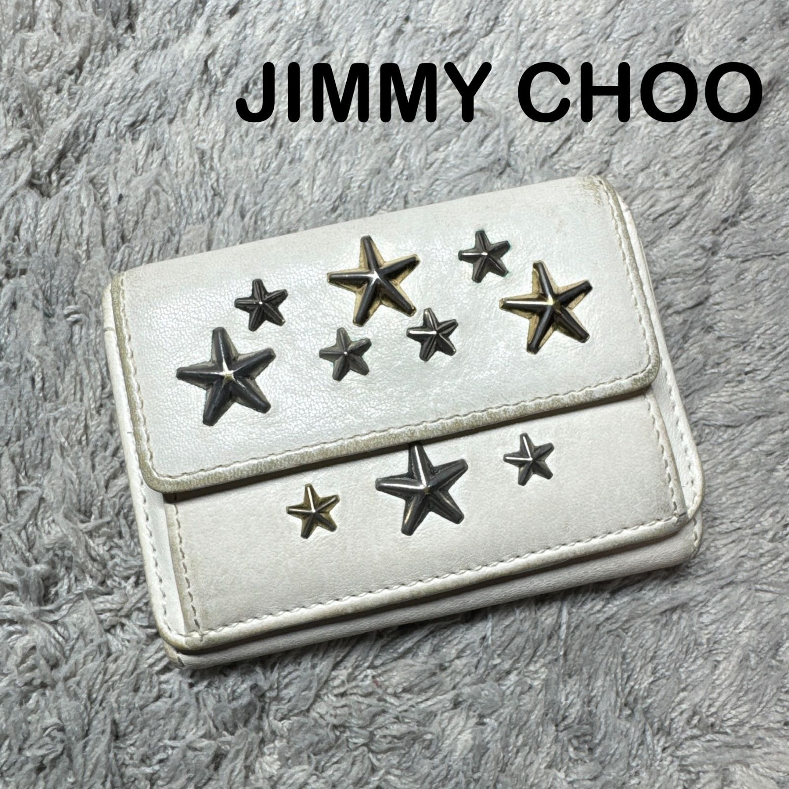 JIMMY CHOO ジミーチュウ 三つ折り財布 コンパクトウォレット レザー スタッズ ホワイト