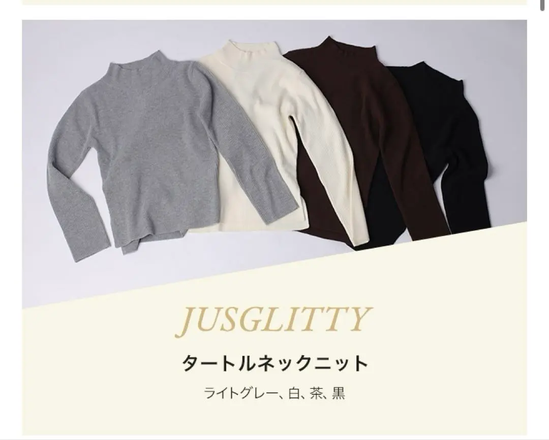 ノベルティ JUSGLITTY タートルネックニット ライトグレー