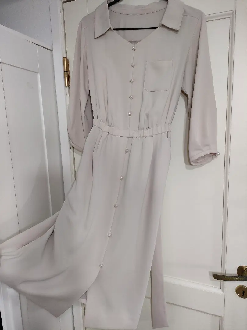 美品✦JUSGLITTYジャスグリッティーパールボタン VネックシャツワンピM