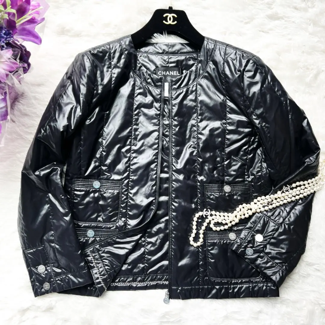 未使用 CHANELシャネル ノーカラー 中綿 ブラック ジャケット ブルゾン