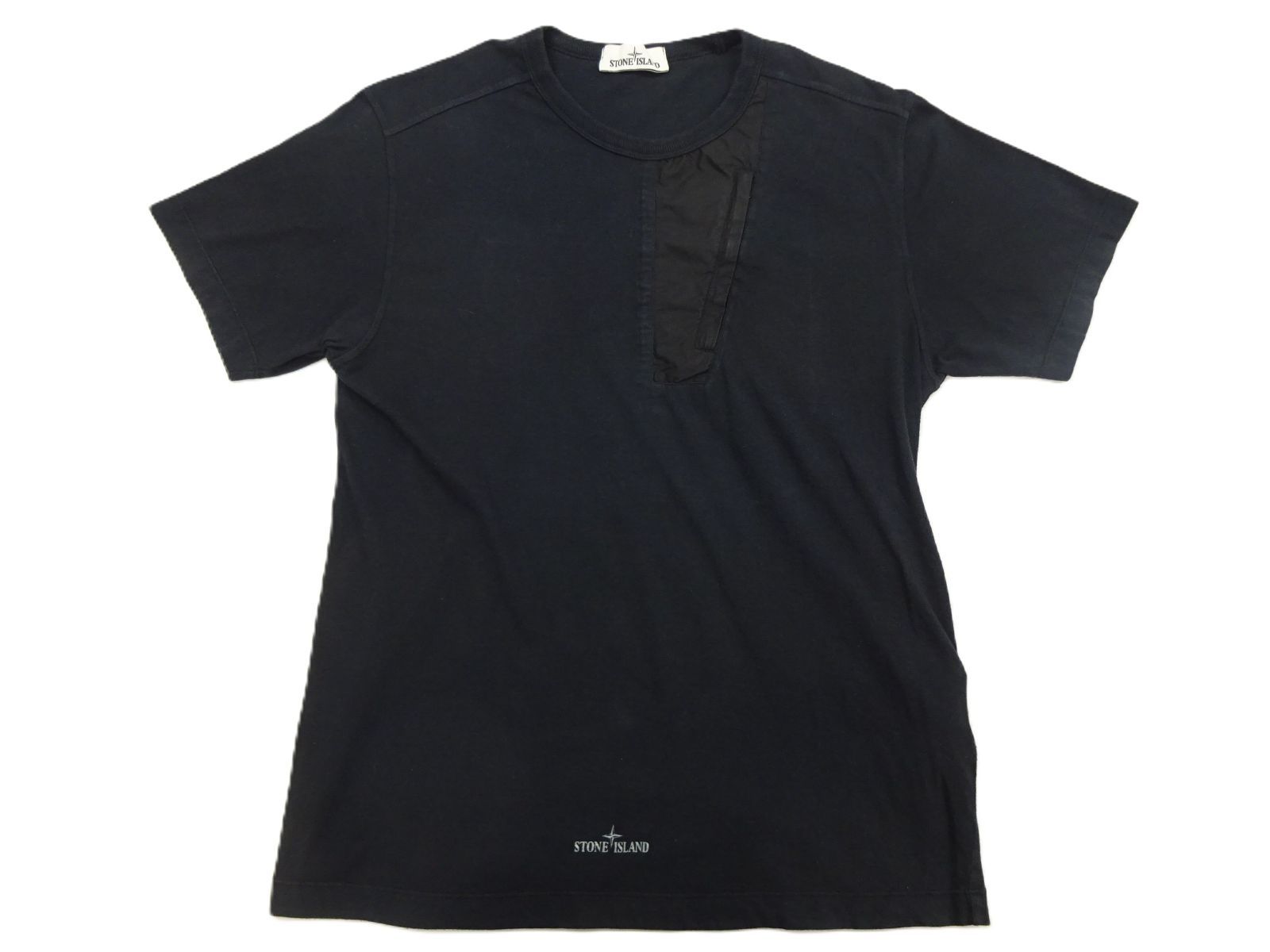 STONE ISLAND ストーンアイランド ジップ 胸 ポケット Tシャツ ファスナー L ブラック 国内正規 切替 721520358