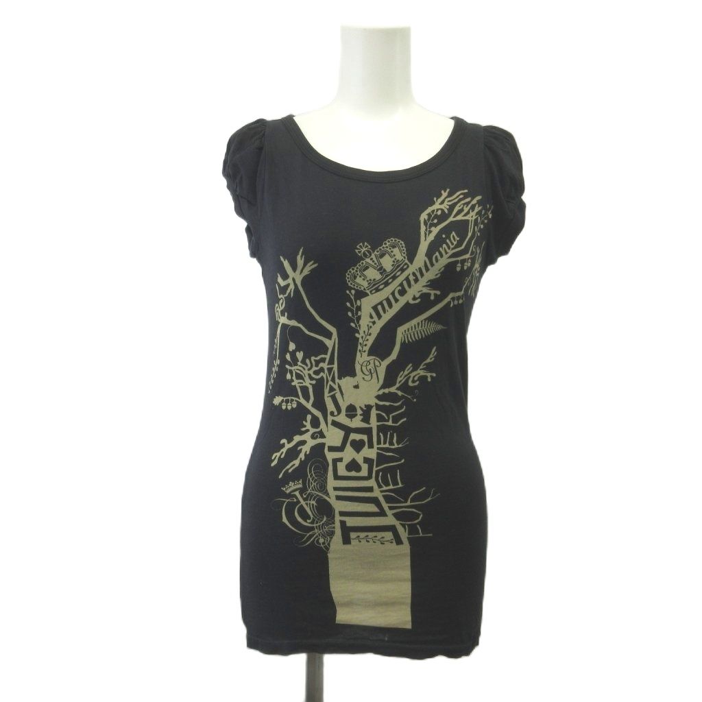 ジューシークチュール JUICY COUTURE Tシャツ P 黒 ブラック 半袖 パフスリーブ グラフィックプリント /KT ■ECA003