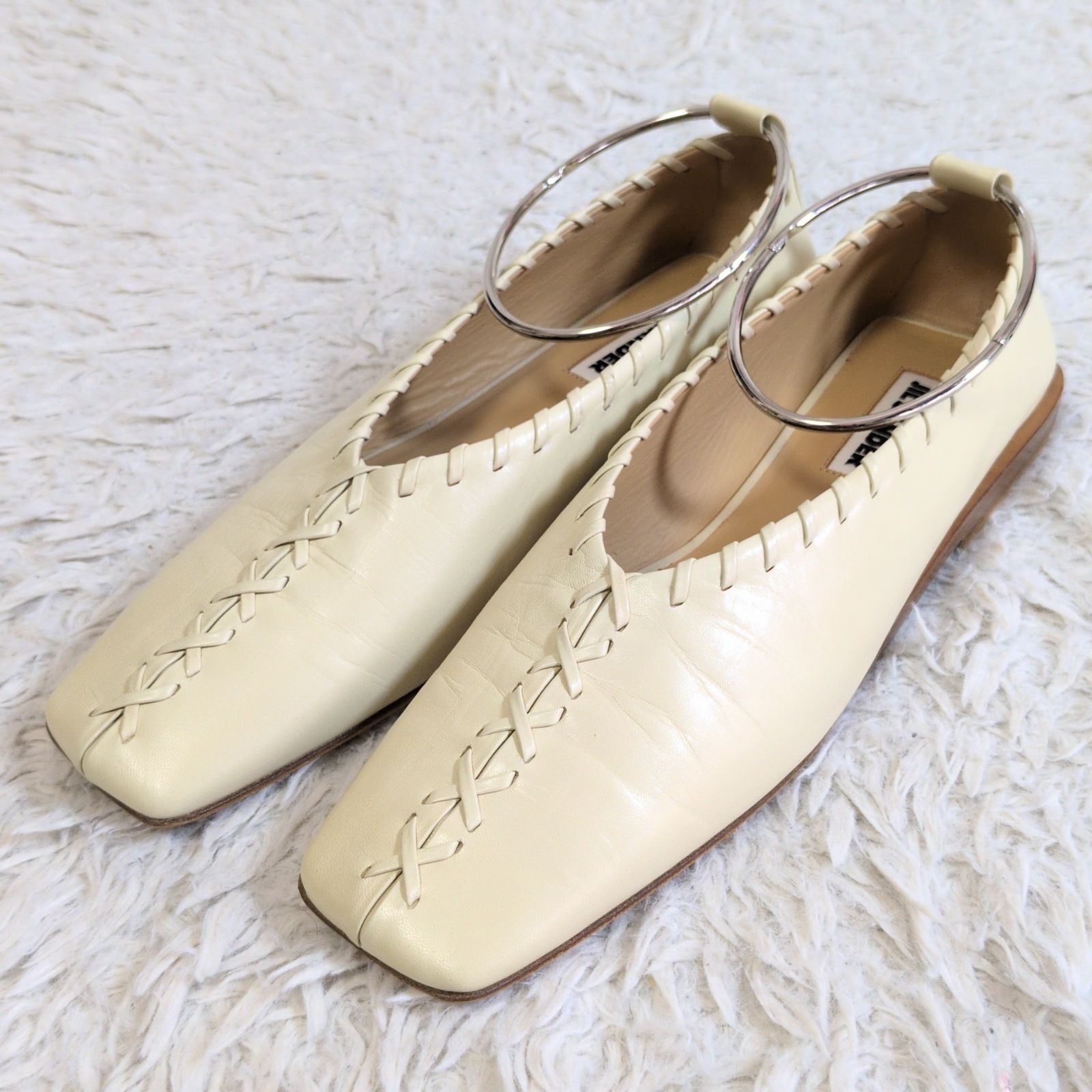 ジルサンダープラットフォームスニーカーホワイトレザーリブソール 36