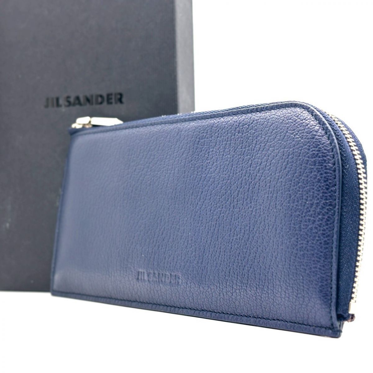 【品よく整う】 JIL SANDER 長財布 ジップロングウォレット L字ファスナー レザー ロゴ型押し 8カード ネイビー