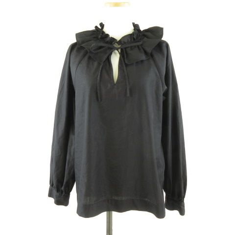 N0784 シアー切替ロングシャツブラウス 比翼ボタン ブラック M