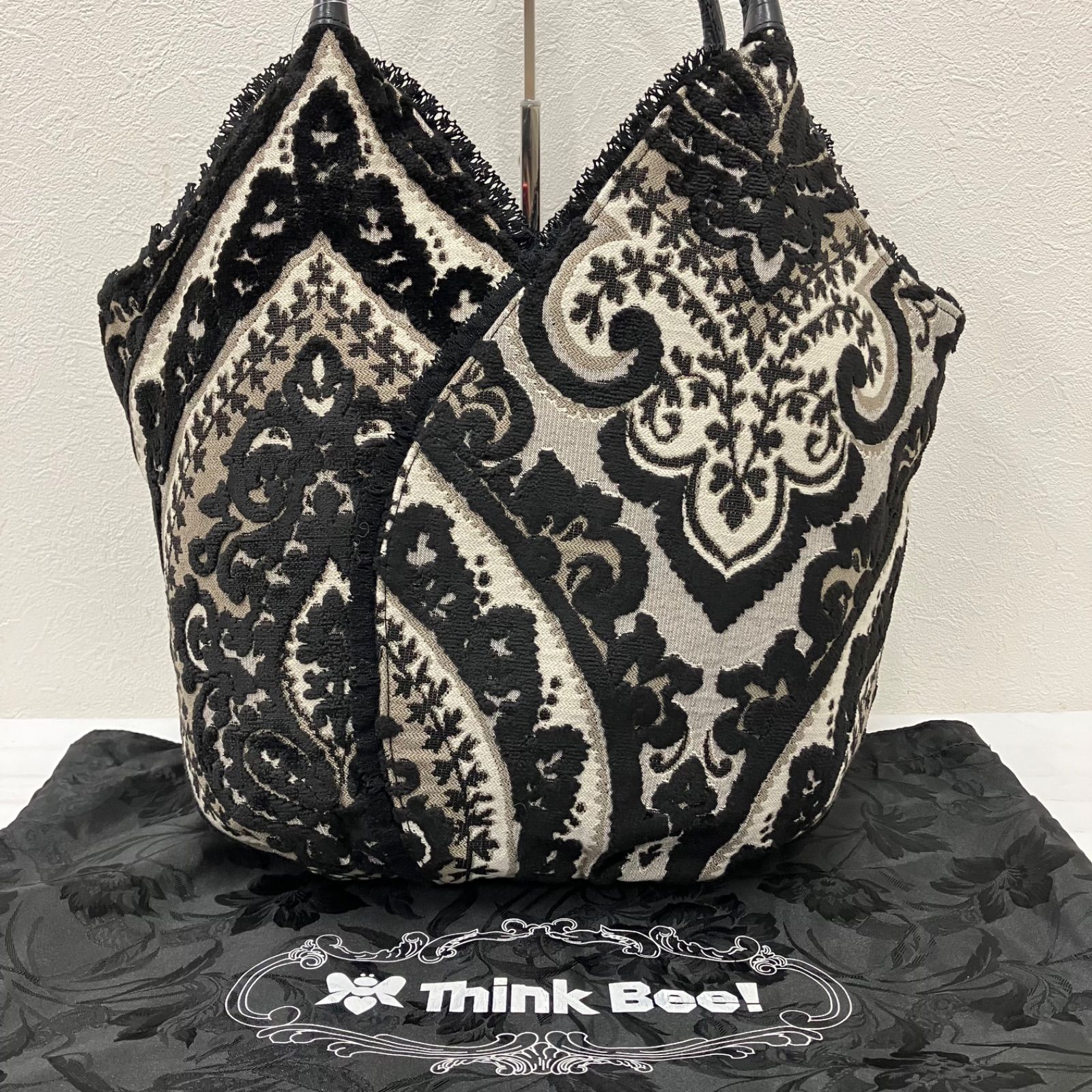 Think Bee! シンクビー トートバッグ 花柄 ゴブラン織り 黒 ブラック