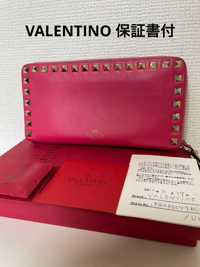 VALENTINO 美品 スタッズ ジッピーコイン 長財布 ピンク 保証書付