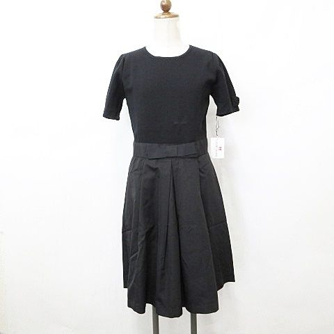 ギャラリービスコンティ GALLERY VISCONTI ワンピース チュニック 半袖 丸首 ひざ下丈 タック フレア リボン 黒 ブラック 2