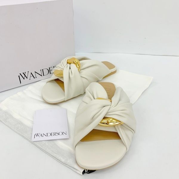 JW Anderson ジェイダブリューアンダーソン チェーン ツイスト サンダル ミュール シューズ レディース サイズ37 ホワイト 靴 DF18754■