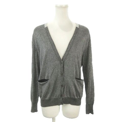 プランピーナッツ plumpynuts カーディガン ニット ラメ シルバーカラー Vネック 長袖 ポケット付き /MN34 ■GY99