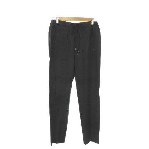 プランピーナッツ plumpynuts イージーパンツ 38 黒 ブラック ドローストリングウエスト 切替 ストライプ柄 /AO34 ■GY99
