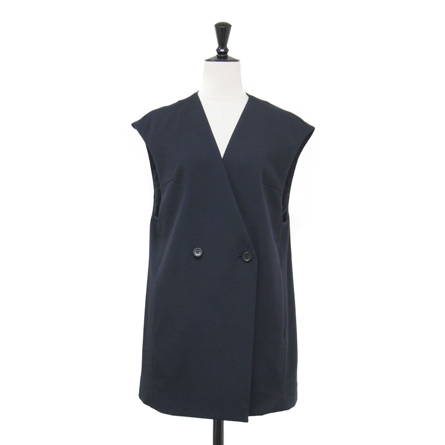 Ballsey ボールジー ベスト ネイビー 紺 サイズ:36(9号) | 24春夏 ドライアムンゼン Vカラージレ / ベスト ミディ丈 フレア | トップス 羽織り【レディース】【中古】