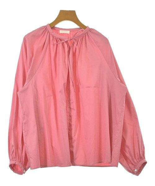 美品▲BALLSEY ハイカウントサテン フリルネックブラウス ピンク 日本製