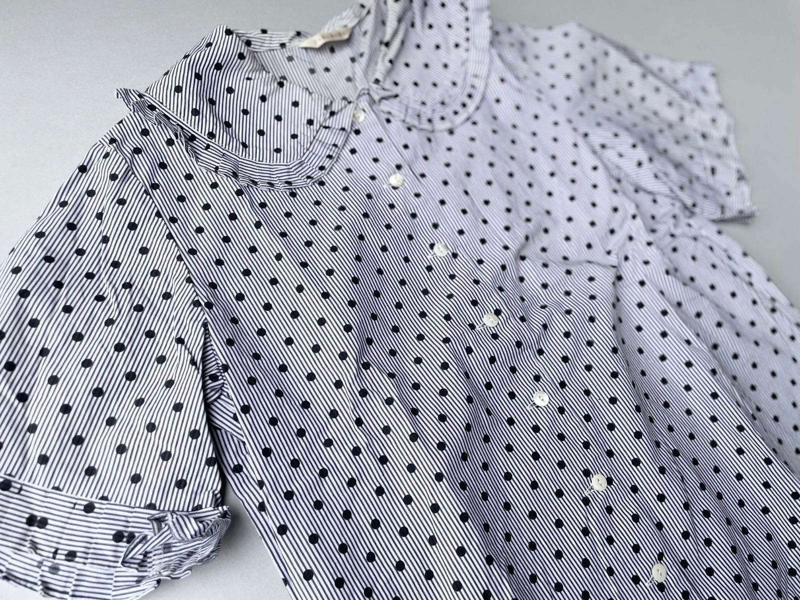 didizizi ドット ストライプ フリル ブラウス
