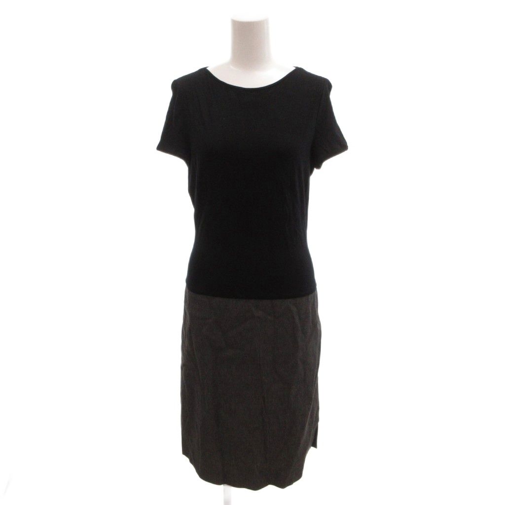 ポールカ PAULE KA 美品 ドッキングワンピース 36 黒 ブラック ラウンドネック 半袖 ひざ丈 /SJ ■ECE003
