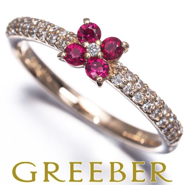 ポンテヴェキオ リング ルビー 0.18ct ダイヤ ダイヤモンド 0.18ct フラワー 9号 K18YG #190311