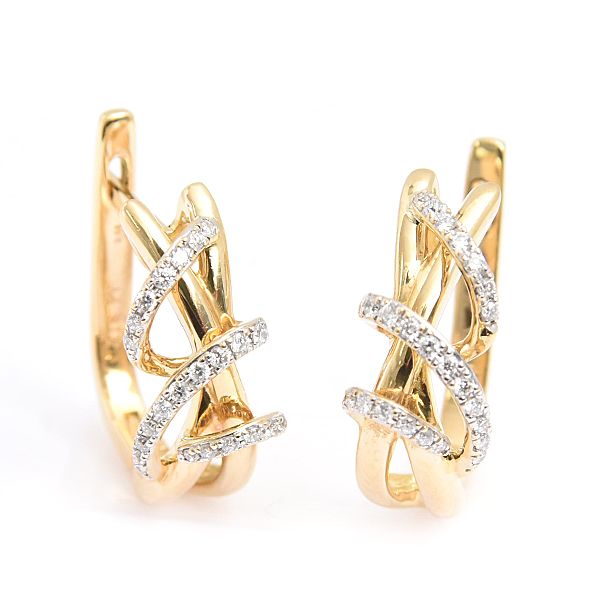 ポンテヴェキオ ピアス レディース ダイヤ スパイラル 螺旋 ツイスト フープピアス イエローゴールド 0.08ct×2 Ponte Vecchio 750YG 中古