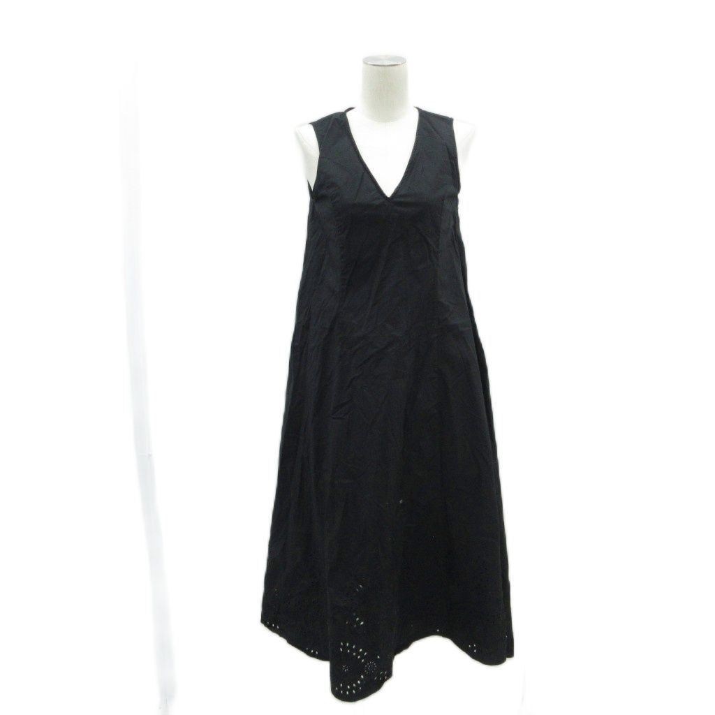 スナイデル SNIDEL ワンピース 0 黒 ノースリーブ Vネック パンチングレース ロング丈 /HO21 ■ECD001