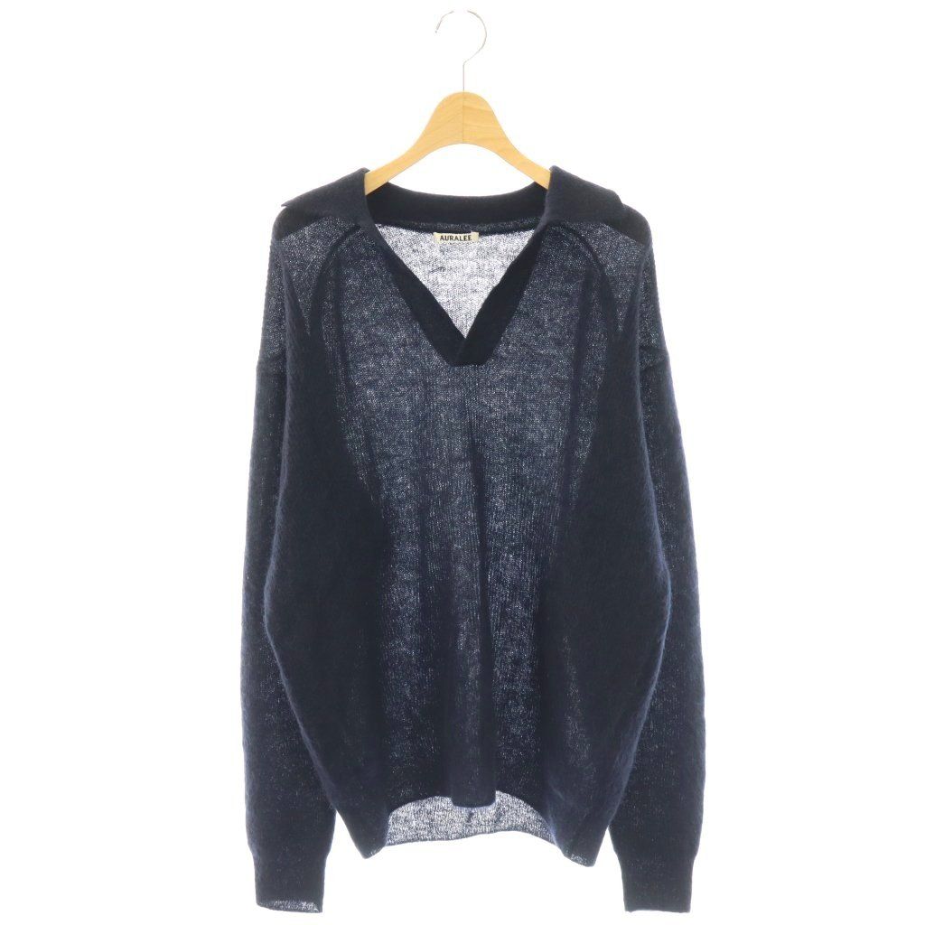 オーラリー AURALEE 25AW BABY SURI ALPACA SHEER KNIT SKIPPER POLO ニット シャツ 4 ネイビー A25AP02AK /DF ■OS