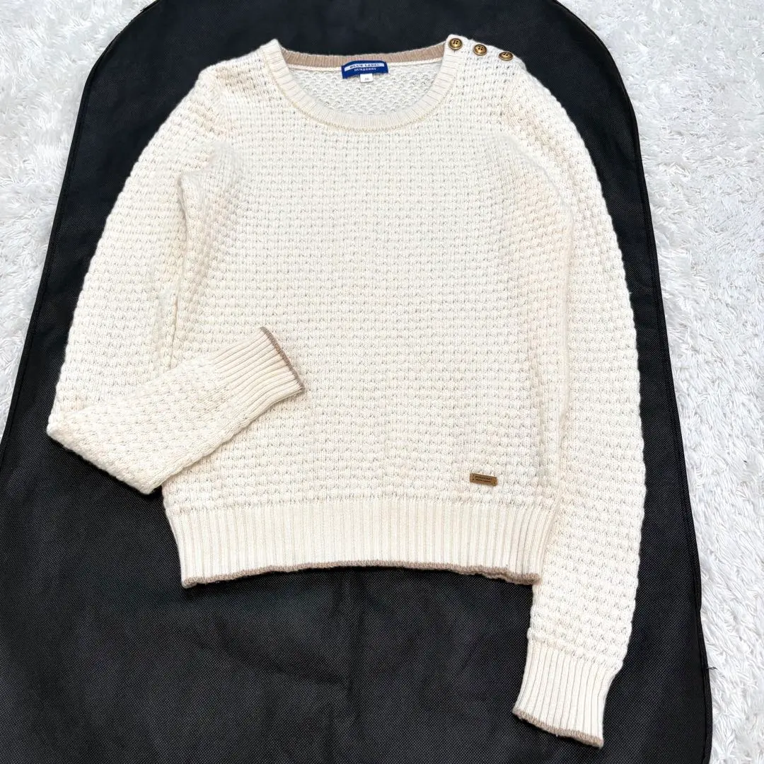 バーバリーブルーレーベル ケージ編みニット セーター カシミヤ混 金ボタン 38