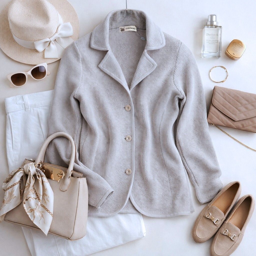 dt434/40《COLOMBOコロンボ》大人のニュアンスミッドグレー系/上質春夏ニットジャケット/レディース/ブルネロクチネリやアニオナ、ロロピアーナがお好きな方も