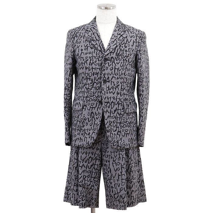 【新品同様】COMME des GARCONS HOMME PLUS コムデギャルソンオムプリュス セットアップ グレンチェック S メンズ テーラードジャケット 3B ショートパンツ EDWARD GOSS アルファベット 共生地/ボタン付 黒 灰色 日本製