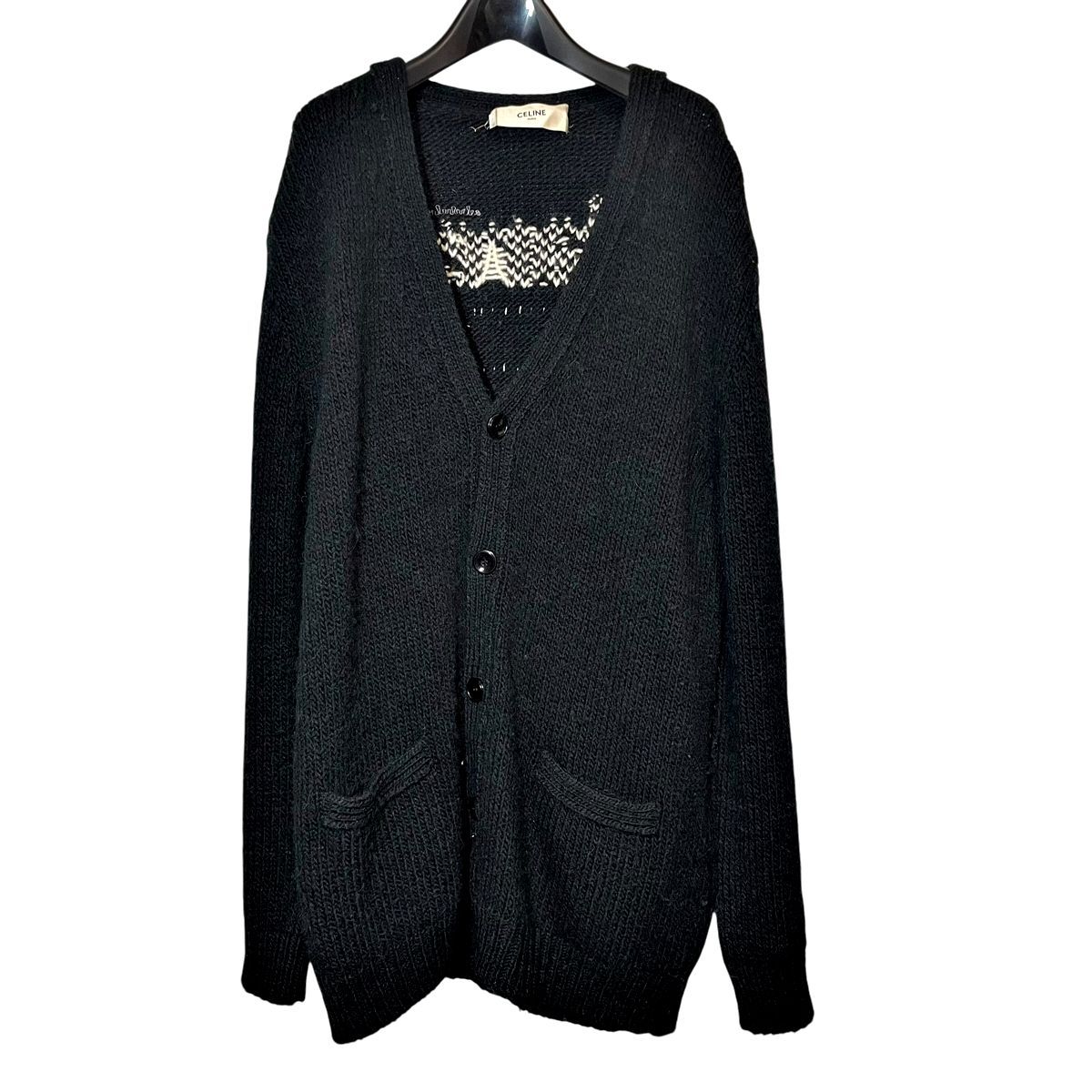 【中古】CELINE セリーヌ デアフューチャーバック ワッペンウール カーディガン 2AE8E528W.38CR サイズ:L ブラック ニット・セーター 25019198 RD