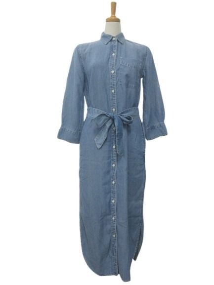 ローレンラルフローレン LAUREN RALPH LAUREN デニムシャツロングワンピース 0 七分袖 インディゴブルー