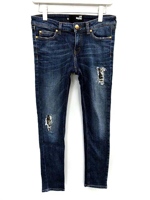 ラブモスキーノ LOVE MOSCHINO パンツ デニム スキニー ロング ダメージ加工 ストレッチ 25 紺 /YO27