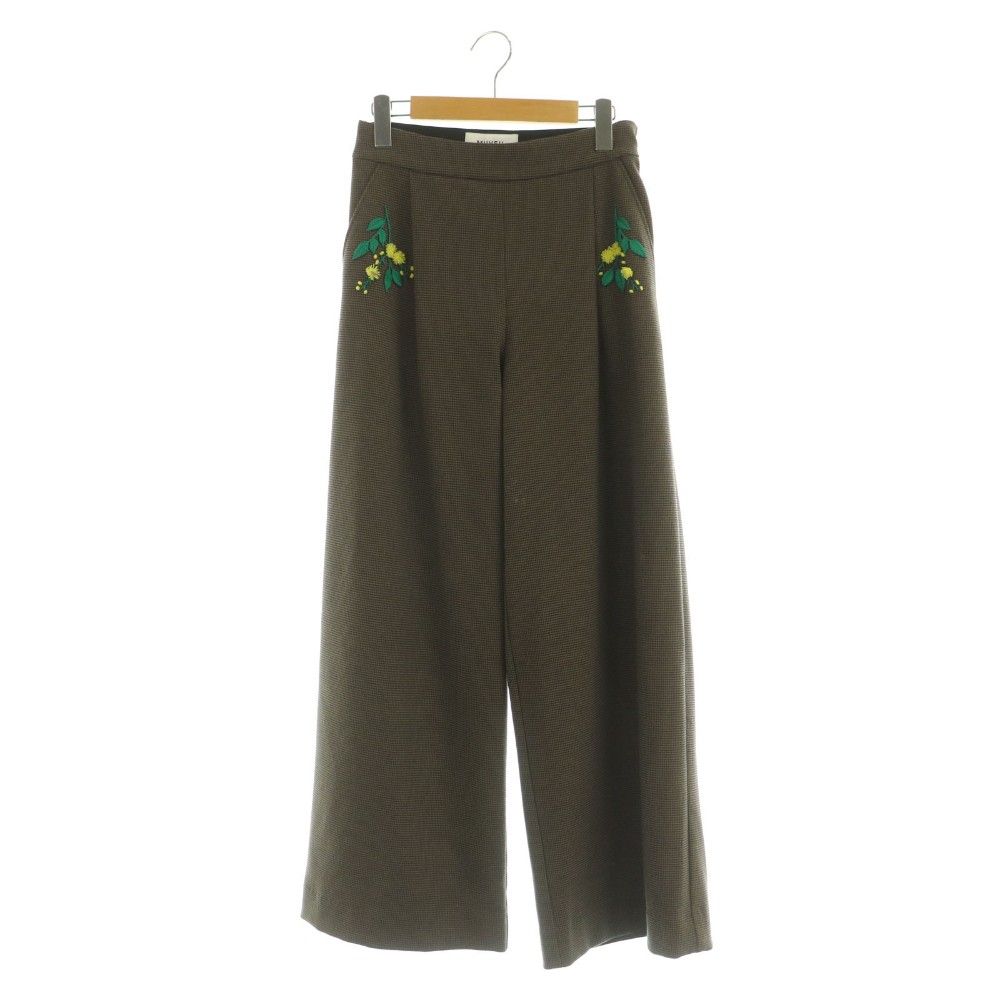 ミュベール muveil 花刺繍 ワイドパンツ 千鳥格子柄 タック 36 ブラウン /MY ■OS