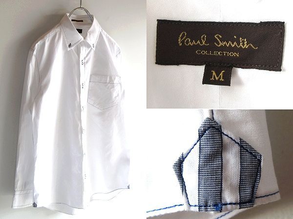 最高級ライン Paul Smith COLLECTION ポールスミス コレクション コットン 青糸 ステッチデザイン BDシャツ M 白 ホワイト 日本製