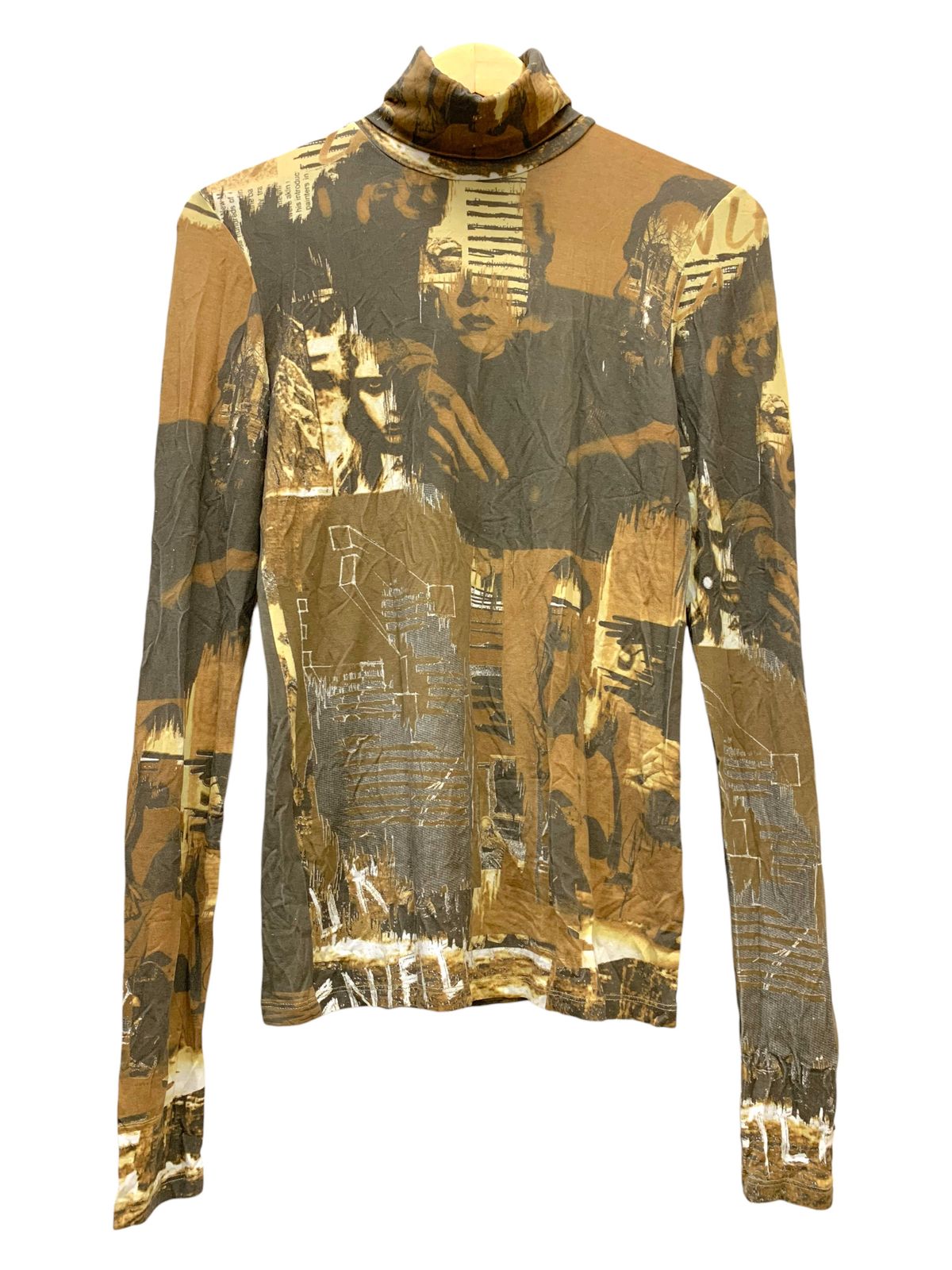 RAF BY RAF SIMONS (ラフバイラフシモンズ) タートルネック カットソー 総柄 グラフィック プリント ポルトガル製 S ブラウン メンズ/036